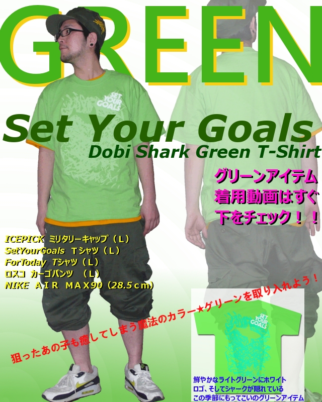 ということで今日はグリーンのTシャツを着用し